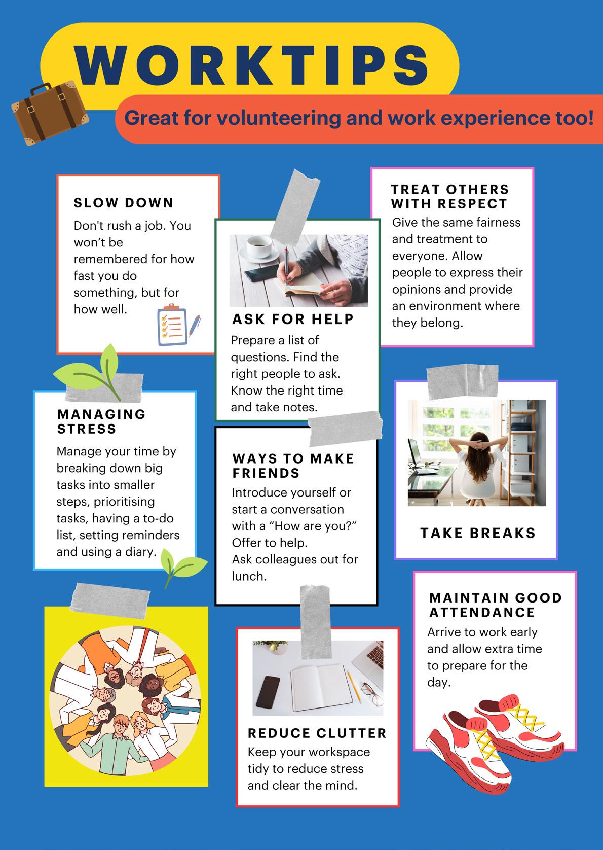 Everybody’s journey is di erent. Our business is committed to ensuring all individuals are supported, respected and connected. Richard Koch 0411 408 526 rkoch@finsbury.com.au Nadia Schutt 0411 480 106 nschutt@finsbury.com.au Responsible and sustainable marketing resources. • Print • Promotional • Signage • Mailing Some of our Barkuma Voice members have shared their tips for working. CHLOE Always ask questions, there are no silly questions. JUSTIN Arrive before your shift starts. LANCE Learn how to use machinery properly. LIZZY Always come to work on time and wear the appropriate gear. JAMES Be kind and make new friends. Work NEVILLE Listen to instructions. ROB Wear appropriate clean clothes. 10 The Buzz