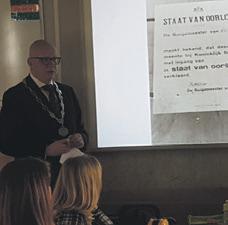 ALBRANDSWAARD - Op maandag 10 april kwam burgemeester Hans Wagner van Albrandswaard samen met Bertie Barendregt van het Comité Herdenking lesgeven aan de leerlingen van groep 8 van de daltonschool Don Bosco in Rhoon.