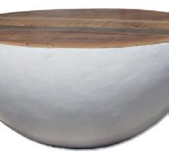 Table Bowl Ambiente In metaal met verzonken houten blad. Verkrijgbaar in metaal, brown en white.