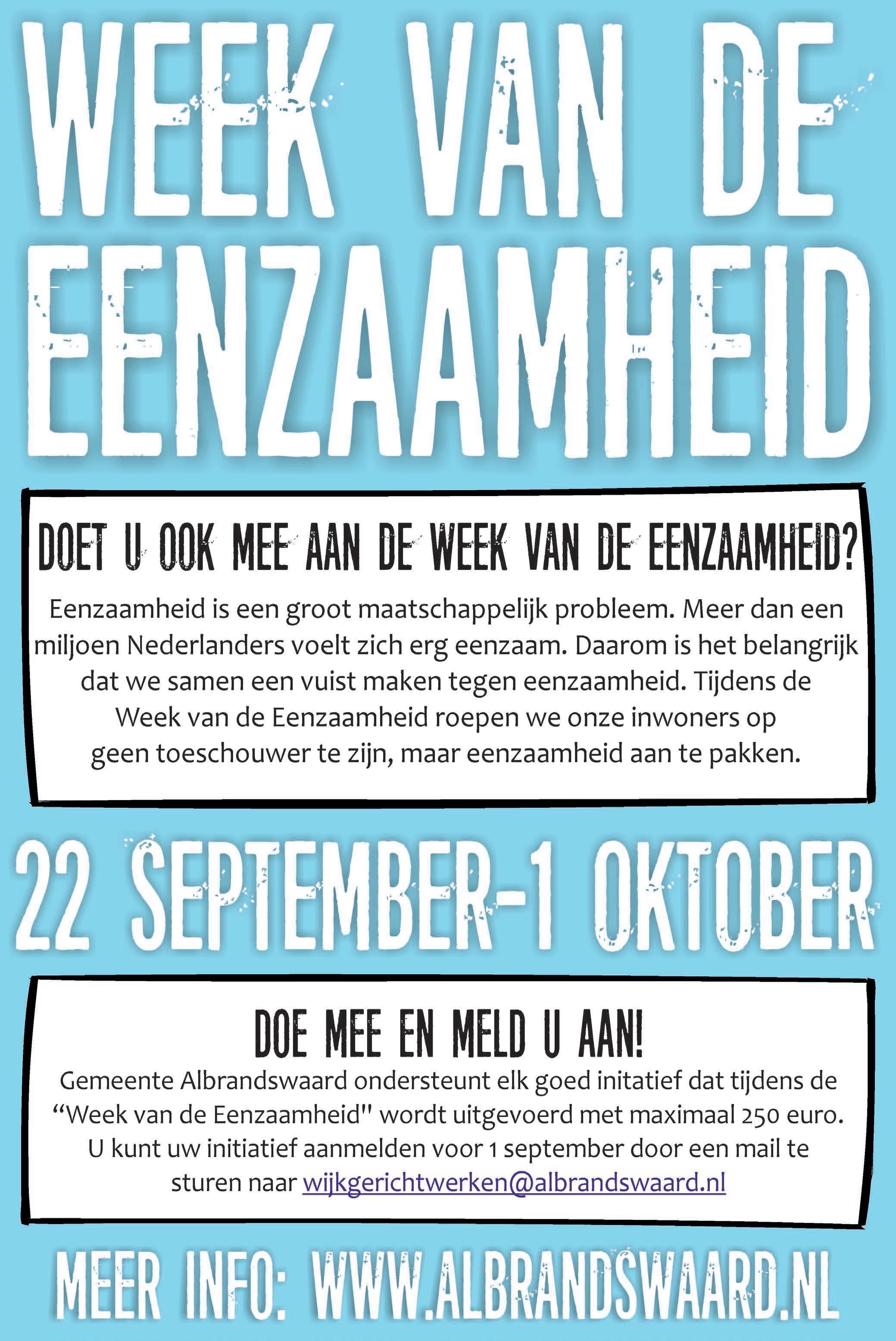 ALBRANDSWAARD - Met een paar uur tijd kunnen geïnteresseerden zich van 7 tot en met 12 november inzetten voor Alzheimer Nederland. Dan wordt de collecteweek van 2016 gehouden. Aanmelden kan bij organisator Albrandswaard Henk Wallenburg via 010-5013303 en hcswallenburg@hotmail.com. Of via