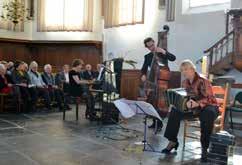Duitsland ligt. De contrabas zorgde niet alleen voor het onontbeerlijke ritme in de verleidelijke dansmuziek die de tango toch vooral is, ook was hij te horen als klassiek strijkinstrument en vervulde hij soms een rol die grensde aan die van jazzinstrument. De rol van Margreet Markerink kreeg nog extra glans doordat enkele van haar eigen composities in het programma waren opgenomen. Daarbij speelde zij ook solo. Deze beeldende en rustgevende muziek (Take a Breath was zo’n compositie) was een waardevolle toevoeging. De musici kregen een staande ovatie waarop het talrijke publiek nog werd getrakteerd op een toegift. Ook een concert bijwonen? Op www. barendrechtklassiek.nl is de programmering te vinden.