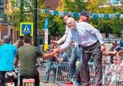 BARENDRECHT - De Doorkomst van de Roparun was afgelopen maandag weer een groot feest. Het zonnige weer droeg daar zeker aan bij. Alle teams uit Hamburg en Parijs, op weg naar Rotterdam, passeerden die dag Barendrecht. Daar werden zij van alle kanten aangemoedigd door het publiek. Ook werd traditioneel over het podium voor het gemeentehuis gelopen en gefietst. Langs de route was er muziek en werd er van alles georganiseerd. Ook op het Doormanplein was het een drukte van belang. Barendrechters genoten daar van muziek, een biertje en het goede weer. Kijk voor meer foto’s elders in de krant en op deschakelbarendrecht.nl.