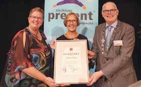 BARENDRECHT- Stichting Present Barendrecht ontving maandag 3 september een Barendrechtse Waarderingsoorkonde. Dit gebeurde tijdens de benefietavond die de stichting organiseerde ter ere van haar tienjarig bestaan. Burgemeester Van Belzen overhandigde de gemeentelijke onderscheiding aan voorzitter Petra Teunissen (midden op de foto) en coördinator Pia van Dalen (links op de foto). Pia: ,,Ik ben er sprakeloos van. Deze oorkonde is voor iedereen die zich op wat voor manier voor de stichting heeft ingezet. Ik kan enthousiast zijn, maar dan nog heb ik al die andere mensen nodig om het waar te maken.’’ Lees verder op pagina 3.