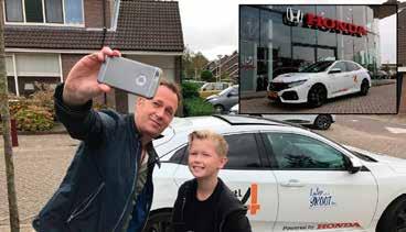 Jochem en Jamie maken een selfie. Inzet: de auto die Honda Verhagen leverde.