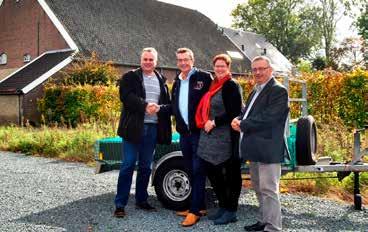BARENDRECHT - Donderdag 12 oktober overhandigden directeur-bestuurder Peter Manders en Ahmed Khoulali van Patrimonium een aanhangwagen aan stichting Present. Coördinator Pia van Dalen en enkele Present-vrijwilligers, onder wie Rob Aandeweg namen hem in ontvangst. Dit gebeurde tijdens de sociaalmaatschappelijke middag waarbij medewerkers van Patrimonium zich vrijwillig inzetten voor organisaties die wat extra hulp kunnen gebruiken. De afgelopen zes jaar heeft Present een aanhangwagen van Patrimonium in bruikleen ge-
