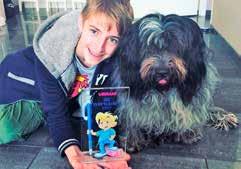 Bowen met Pepper, samen hoofdrolspelers in zijn winnende strip.