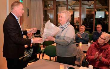 BARENDRECHT - Tijdens de maaltijd voor senioren aan de Windsingel op dinsdag 20 november werden de aanwezigen verrast door een delegatie van Present Barendrecht. Projectleidster Magda Klein mocht de negende Bruggenbouwersaward in ontvangst nemen. Magda Klein is als vrijwilligster verbonden aan Unie van Vrijwilligers (UVV). Deze organisatie is al ruim vijftig jaar lokaal actief in diverse projecten. Denk daarbij aan het Ganzenbordspel, dat een brug slaat tussen gehandicapten en schooljeugd en de boekendienst, waarbij boeken worden gebracht bij mensen die dat zelf niet meer kunnen. En de oude-