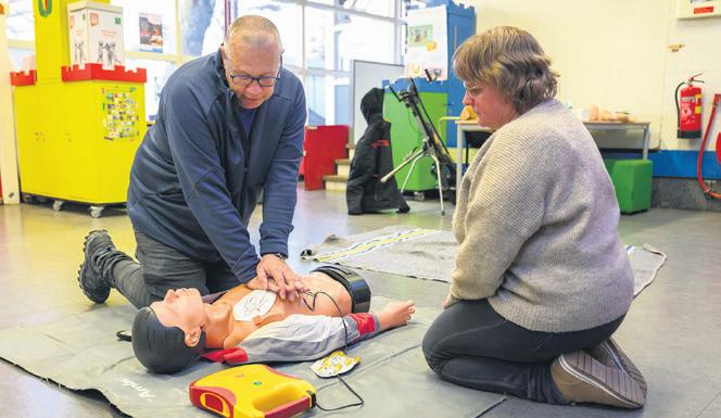 Ton Dorchain doet aan een cursist voor hoe je moet reanimeren. Foto: Mladen Pikulic
