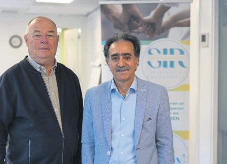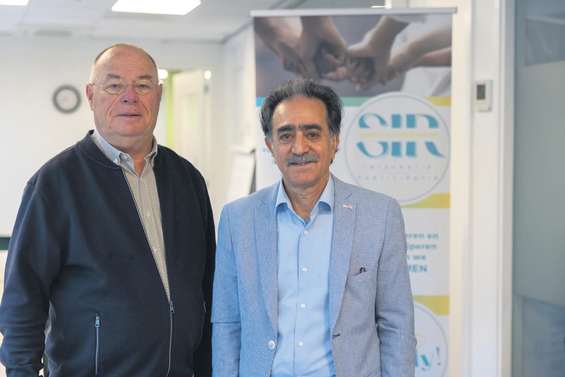 Voorzitter Piet de Vries (l) van Stichting Integratie Ridderkerk en Farid Siavash, vertegenwoordiger van de Afghaanse Culturele Vereniging (ACV) in de social store, waar de SIR spreekuren en activiteiten aanbiedt.