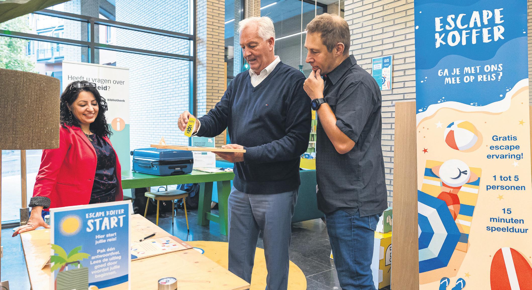 naar het Taalpunt in de bibliotheek. Deelnemers konden met de Escape Ko er ervaren hoe het is om moeite te hebben met lezen en schrijven. Dit is een draagbare escaperoom. Spelers liepen vast in taal en merkten hoe frustrerend dit kan zijn. Ook wethouder Edward Piena deed mee. “Er zijn helaas steeds