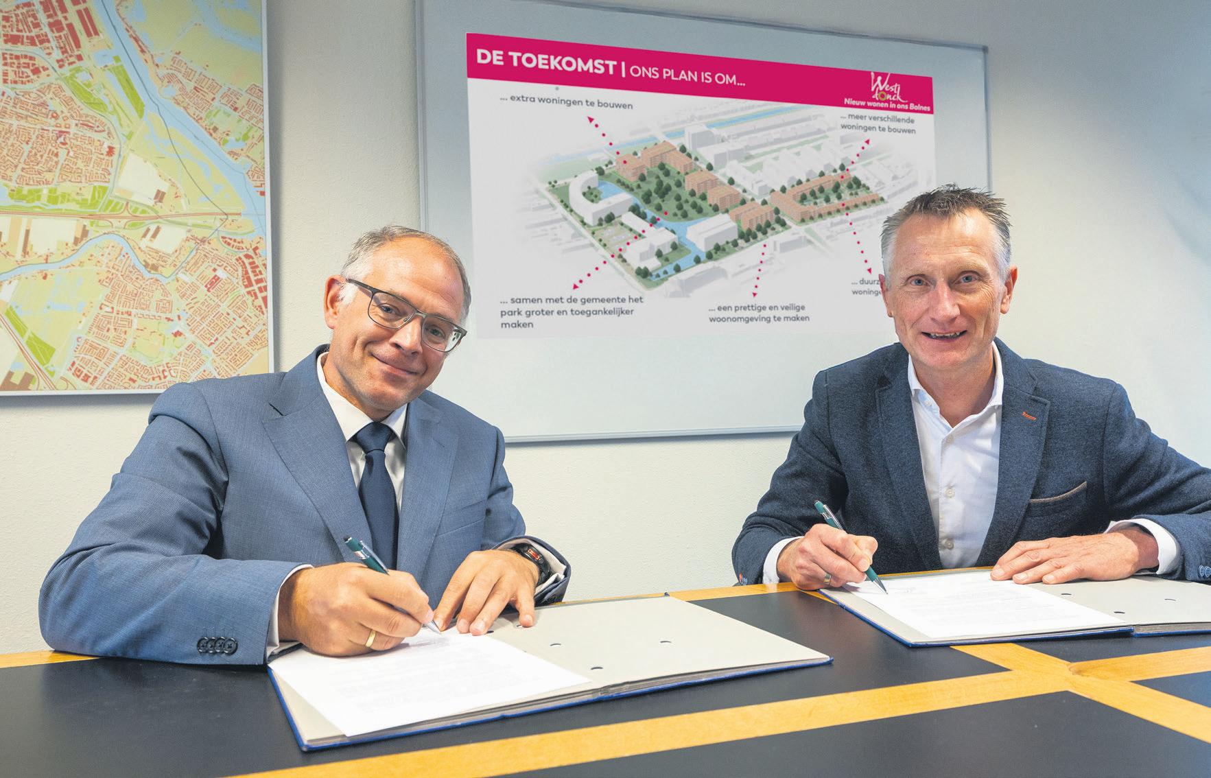Harro Zanting, directeur van Wooncompas, en wethouder Kees van der Duijn Schouten tekenden vorige week overeenkomsten voor de start van project Westdonck.