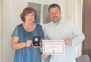 Elly van Wingerden van Administratiekantoor P.C. van Wingerden ontving vorige week woensdag een zilveren ondernemerspenning uit handen van wethouder Henk van Os.