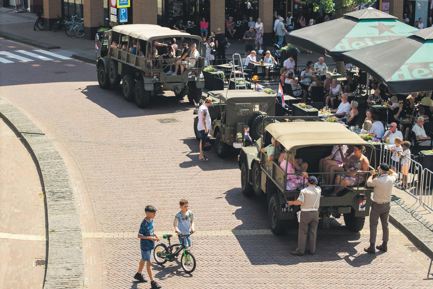 Boven: er werd een minuut stilte gehouden, waarna het Wilhelmus klonk. Onder: iedereen kon weer een ritje maken met de TRIS-legervoertuigen.