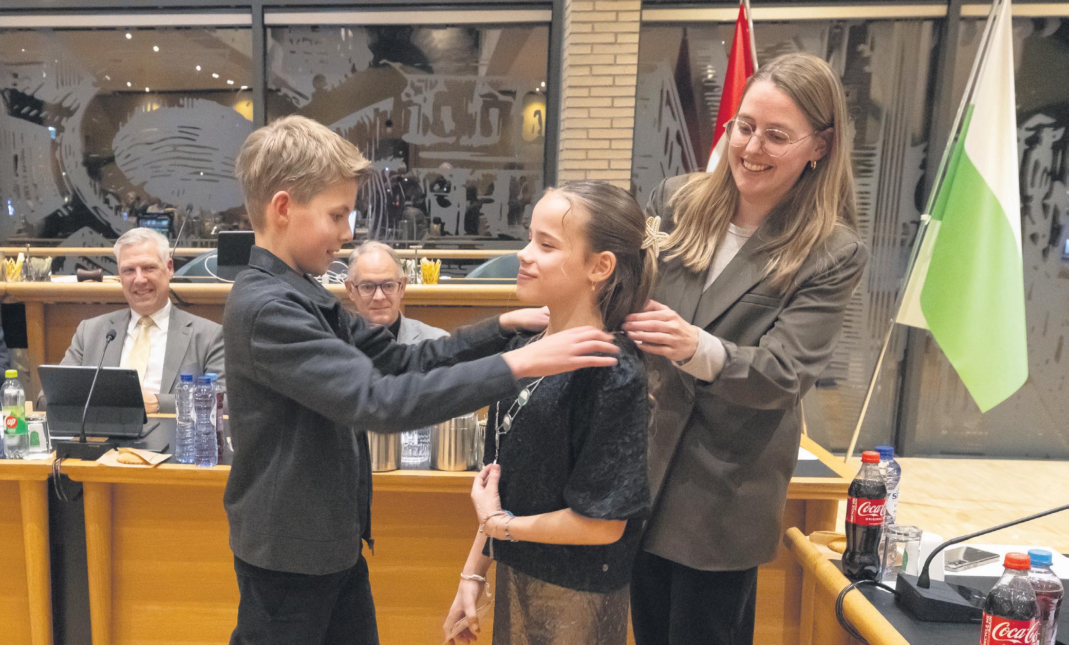 Aan het begin van de raadsvergadering kreeg de tienjarige Lisa de ambtsketen officieel omgehangen door haar voorganger Lucas Rijsdijk. Dit gebeurde onder toeziend oog van