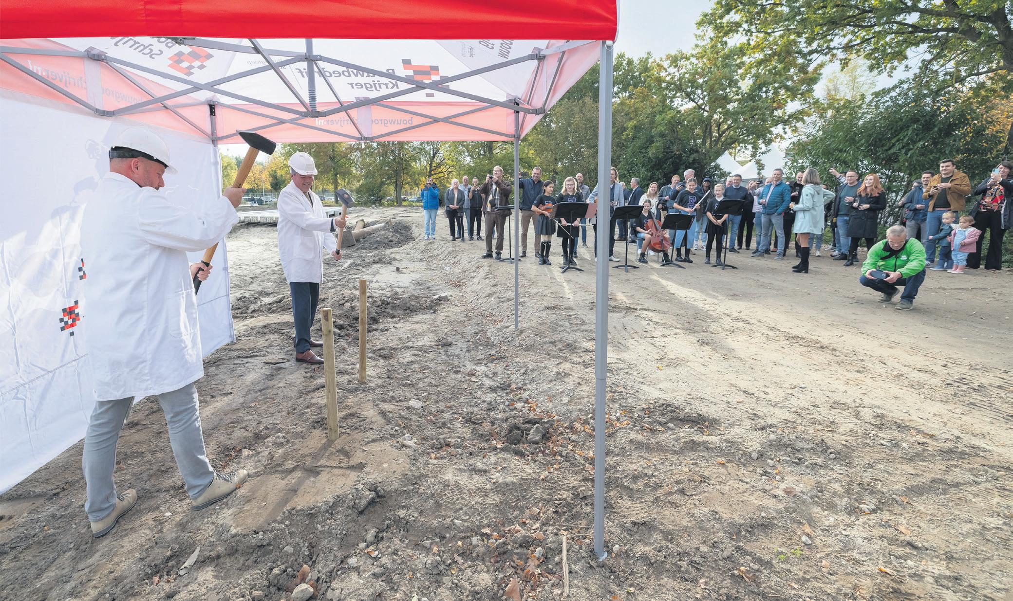 wege zijn bijzondere verbinding met Ridderkerk: zijn vader richtte de muziekschool op. Samen sloegen zij met een hamer symbolisch de eerste paal. Dat deden ze onder toeziend oog van alle partijen die hun intrek zullen nemen in het gebouw. De planning is dat zij in de kerstvakantie van 2025 kunnen verhuizen. Na de