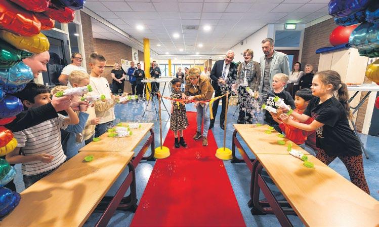 Onder toeziend oog van wethouder Edward Piena openden leerlingen van De Burcht samen met teamleider jonge kind Ingeborg Muller de BSO+.
