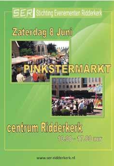 Voor de jaarlijkse Pinkstermarkt in Ridderkerk worden weer ruim 250 kramen opgebouwd in het centrum. Net als vorig jaar wordt de Kerksingel benut voor oude ambachten en een palingrookwedstrijd. Ook de Singelkerk treedt dit jaar naar buiten met een aantal kramen.
