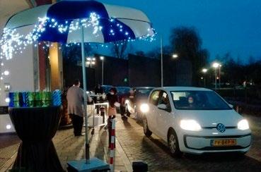 voor vier gangenmenu’s, die op de grote dag vers gepresenteerd moesten kunnen worden. Het kerstmenu bestond uit Veluwse wildsalade, pompoensoep, een procureurlapje met ronde wijnsaus + spruitjesstamppot, gebakken paddenstoelen en krieltjes met kruiden. Daarnaast werden gepocheerde peertjes met chocolademousse als dessert bereid. Voor het wegbrengen van deze handig verpakte diners had Riederborgh even het beeld van een McDrive. De dames van de thuiszorg stonden met hun auto’s in een lange rij om de diners coronaproof overhandigd te krijgen. Niemand