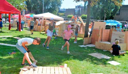 In Slikkerveer zijn afgelopen maandag 120 kinderen enthousiast begonnen met het bouwen van hutten. In groepjes verdeeld realiseren ze samen een tijdelijk dorpje met zo’n twintig ‘woningen’. De warmte lijkt de jonge bouwers niet te deren. Wel zijn er op veel bouwplaatsen parasols geplaatst. Ook zijn sommigen heel creatief geweest met zeil dat dienst doet als zonnescherm. De begeleiders van het huttendorp maakten maandag ook een zeer gewaardeerd bouwsel. Van hout en waterdicht zeil werd een klein zwembad gebouwd. Voor baantjes trekken is het te klein, maar iedereen kan er wel even voor verkoeling zoeken.