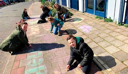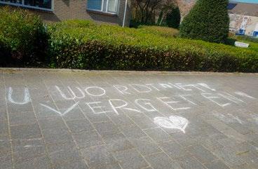 De zon scheen en daarom trokken Jurre, Daan, Mirthe en Jart er met hun moeders zaterdag op uit om het zonnetje ook door te geven aan personeel en bewoners van zorgcentra in Ridderkerk. Gewapend met een grote emmer stoepkrijt togen ze als eerste richting ‘t Ronde Sant. Met vrolijke kleuren tekenden de kinderen en moeders opbeurende teksten als wij delen liefde uit, houd moed, zet ‘em op en #pepchalk. Ouderen kwamen het tafereel vanachter het raam bekijken, zwaaiden en gaven kushandjes aan de kinderen. Ook personeel was ontroerd. Na deze mooie ervaring werd ook de stoep bij de Riederborgh voorzien van vrolijke teksten en lachende zonnetjes.