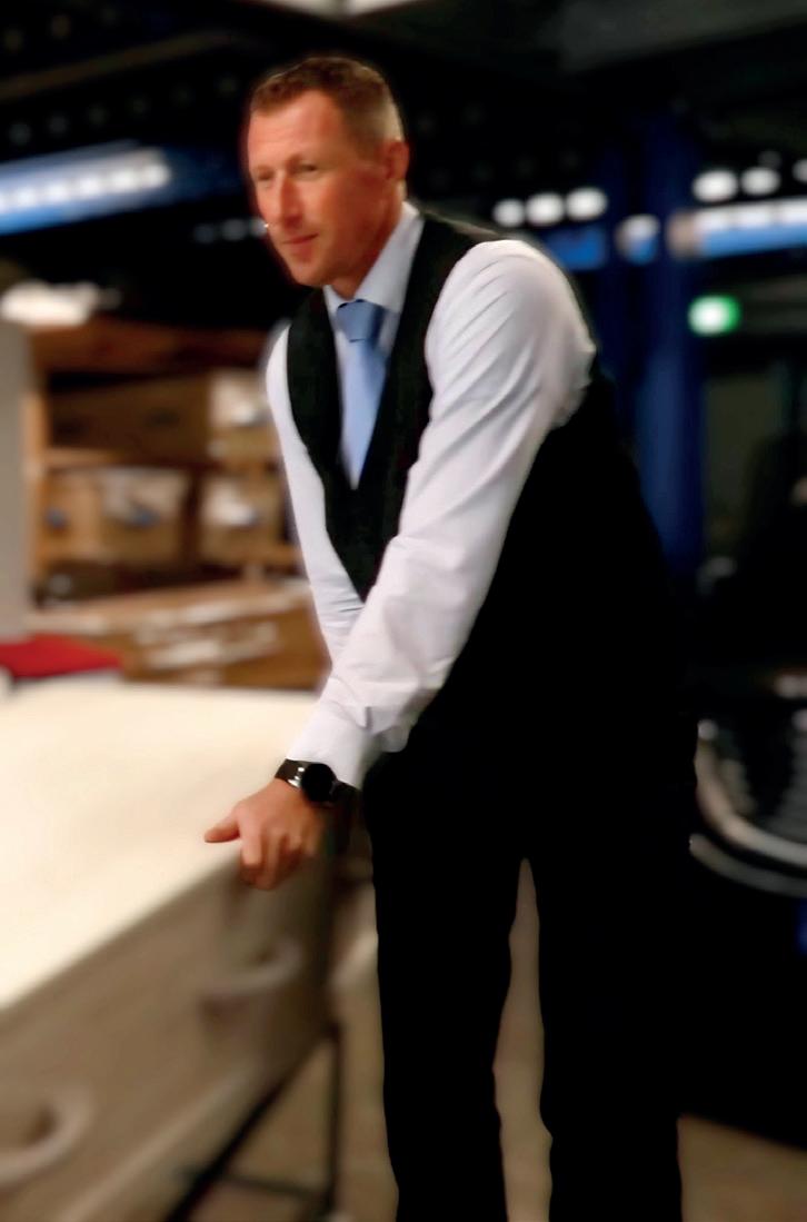 het me opleverde,” zegt Edwin openhartig. In 2018 maakte zijn vrouw de overstap naar de uitvaartbranche. “Ik zag wat die verandering met haar deed –de voldoening, de betrokkenheid. Ik raakte nieuwsgierig en hielp af en toe mee.” Via zijn vrouw kwam hij in contact met Maas Rouwservice, een groeiend rouwvervoerbedrijf. “Ik kende al wat mensen uit het team, dus de drempel om mee te draaien was laag.” De overstap bleek een schot in de roos. “Ik begon met dag- en nachtdiensten meelopen, en voelde me meteen als een vis in het water.”