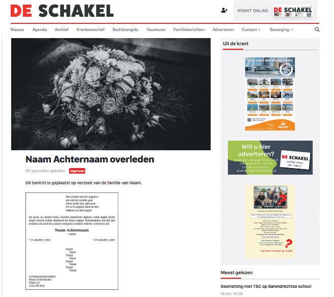 Veel uitvaartondernemers in de regio zijn al bekend met deze online-mogelijkheid. Mocht uw uitvaartverzorger hier nog niet mee werken, aarzel dan niet om contact op te nemen met de uitgever van uw lokale huis-aan-huiskrant. Zij helpen u graag om het bericht op gepaste wijze te publiceren.