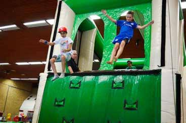 sens: een ‘gewoon’ sprookjes springkussen en een sprookjeskussen met een glijbaan. Vaste bewegingsonderdelen van Jeugdland geworden zijn inmiddels The Hill Running stormbaan, DigiDance, rollerbank-fietsen en het bungee-web voor mooie luchtsprongen. ‘Over water lopen’ in het zwembad wordt er mogelijk nog aan toegevoegd. Bij het knutselen houdt Jeugdland vast aan al jaren vertrouwde activiteiten, zoals bloemschikken, modelbouw, figuurzagen en vogelhuisjes timmeren. Daarnaast hebben de dames van de werkgroep weer een aantal nieuwe dingen be-