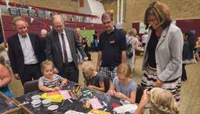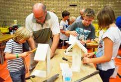 Jeugdland Ridderkerk is met een drukke eerste dag van start gegaan. Dinsdagmorgen waren er al bijna 700 kinderen langs de kassa in De Fakkel gegaan. In de sporthal zorgt de werkgroep Jeugdland van de Stichting Evenementen Ridderkerk (SER) vier dagen lang voor vermaak met allerlei leuke activiteiten. Ook dit jaar ontbreken het naaiatelier, bloemschikken en de timmerhoek niet. Veel kinderen stonden dinsdag in de rij voor het maken van ene vogelhuisje of een uniek stoffen poppetje. Ook aan andere creatieve tafels kunnen er leuke werkstukken worden gemaakt. Populair zijn ook weer de verschillende springkussens, DigiDance en