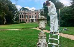 ten, doen onderzoek naar de oorzaak van schades en (biologische) aantastingen en stellen mogelijke behandelplannen hiervoor op. Daarnaast zullen zij ook advies geven voor de nog uit te voeren restauratiewerkzaamheden als ook voor preventieve monitoring en conservering naderhand. Iedere individuele stap in dit proces is zorgvuldig doordacht om de objecten vervolgens beter toekomstbestendig te maken! Om de restauratiewerkzaamheden van de buitenbeelden te kunnen starten en ook tijdig te kunnen afronden, is de crowdfundingsactie “Restauratie van de Tuinornamenten & Inrijhek” gelanceerd. Alle informatie hierover is te vinden op: www. voordekunst.nl/projecten/7687.