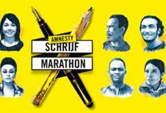 Na de zeer succesvolle Schrijfmarathon afgelopen jaar, gaat Nederland opnieuw massaal brieven schrijven voor mensen die groot onrecht is aangedaan. Ook in Ridderkerk wordt op 7 en 8 december volop geschreven. In de hal van het gemeentehuis is een tentoonstelling van de Wereldwinkel en daar staat ook de Amnestygroep. Iedereen die wil schrijven is welkom van 10.00 tot 16.00 uur op beide dagen.