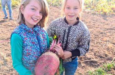 De biet was er wel moeilijk uit te trekken, want Elfie en Zoë vielen bijna naar achter. De bladeren waren nat, dus hielden ze er een natte broek aan over maar het was het wel waard.