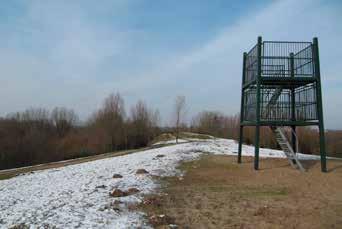 sen. Ooit was het een afvalstort, maar ondertussen is niets dat verraad dat het niet natuurlijk zou zijn. En het is echt wel klimmen af en toe! Het gebied bestaat voor een groot gedeelte uit bos, er zijn meertjes en glooiende grashellingen met bankjes onder kastanjebomen. Je waant je zo in het buitenland. En ook weer niet, want wanneer je de kleine uitkijktoren bovenop het hoogste punt beklimt en dat hele vlakke Zuid-Holland opeens rondom aan je voeten ligt, dan kun je niet meer ontkennen dat je thuis bent. En ook niet dat het toch echt wel heel mooi is: van de molens van Kinderdijk, via de brede rivier de Noord over de mooie Crezéepolder met z’n rusteloos foeragerende vogels. En de horizon in één streep.