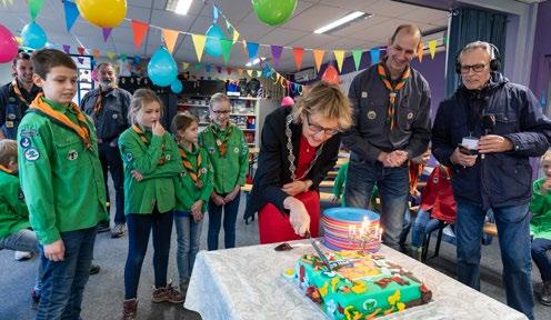 POORTUGAAL – Scouting Albrandswaard kreeg zaterdag 11 januari bezoek van burgemeester Jolanda de Witte. Ze kwam op visite aan de Zwaardijk in Poortugaal ter gelegenheid van het feit dat in Nederland de welpenspeltak een eeuw bestaat. De burgemeester sneed een mooie taart aan om het eeuwfeest van start te laten gaan. Alle Albrandswaardse welpen genoten daarna van de lekkernij die werd geschonken door KC’s Bakery uit Rhoon. Samen met de burgemeester werd er levend kwartet gespeeld. Kijk voor meer info op www.scoutingalbrandswaard.nl.