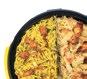 De inhoud van de pan is 2400 gram. Een complete maaltijd voor ongeveer 6 tot 8 personen. De kiphapjes bovenop de maaltijden maken de pan helemaal af!