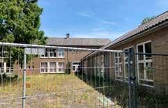 Het oude schoolgebouw staat er verlaten bij.