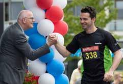 BARENDRECHT - Op Tweede Pinksterdag, maandag 10 juni, passeerden de meer dan driehonderd Roparunteams uit Hamburg en Parijs lopend en fietsend gemeente Barendrecht. Op de kruising Boezemweg/ Stationsweg, op het gemeentehuisplein, voor Heuvelsteyn, op het Doormanplein en bij hospice De Reiziger werden de Roparunners extra feestelijk onthaald met (muzikale) activiteiten. De organisatie kijkt zeer tevreden terug en bedankt iedereen die daar een bijdrage aan heeft geleverd. De vele gezellige activiteiten langs de route en het onverwachte mooie weer zorgden opnieuw voor een onvergetelijk onthaal van de Roparunners.