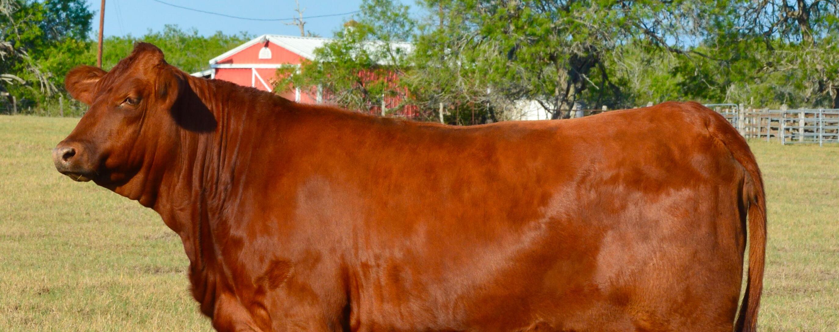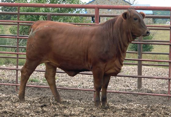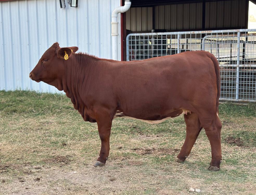 JNC 14-4 is out of a Circle WL Troubador daughter and our V7 Cowboy Cool Grandson herdsire. Solid red with a big hip.