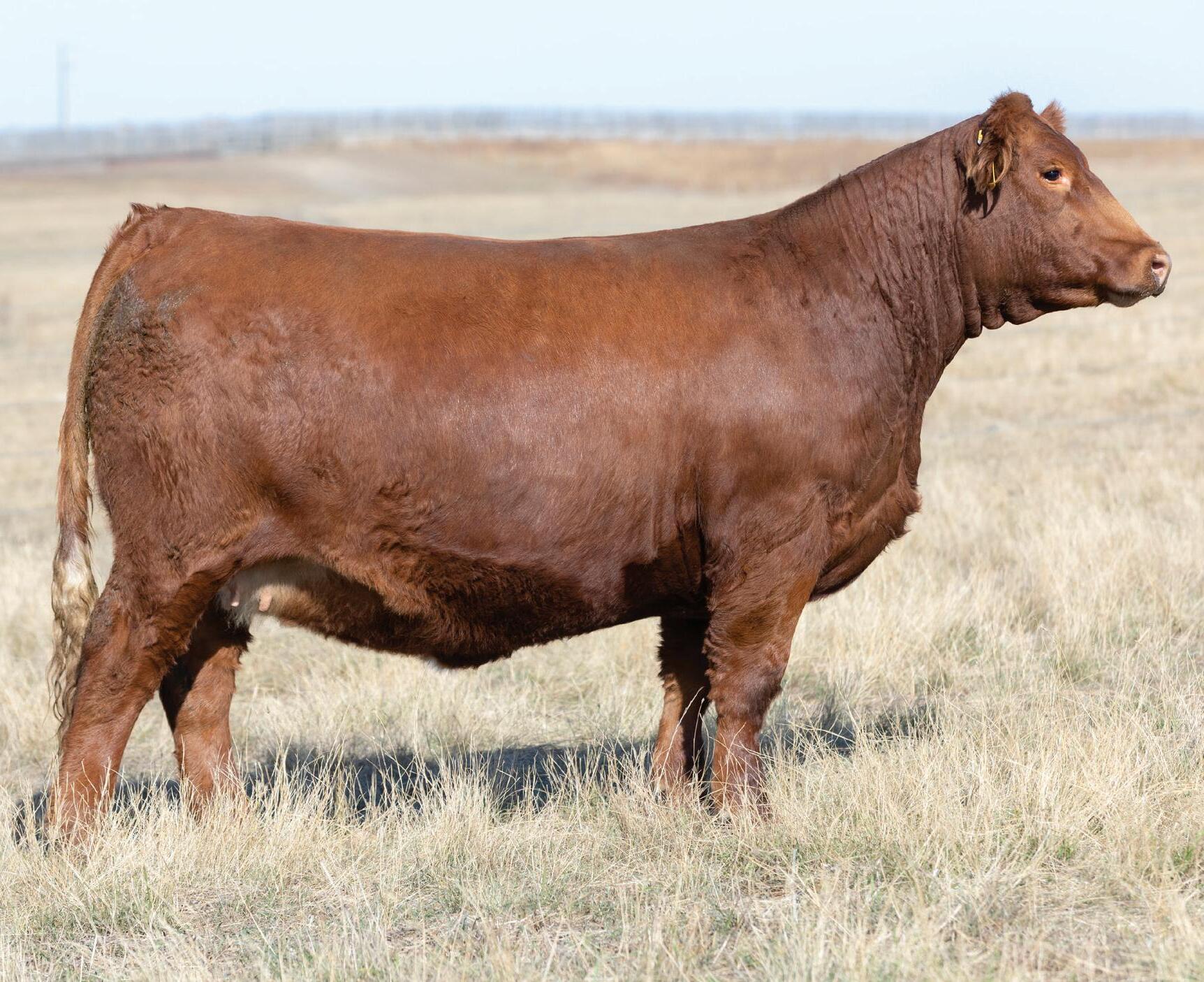 Stored at Bow Valley - Bassano, AB CAN & USA Qualifed Tafeta 142B will forever be one of the most infuential females to walk the pastures of Six Mile. She stands on an impeccable foot, has a sweeping rib cage and picture-perfect udder. A female that adds calving ease and maternal quality to all of her progeny. This mating to the household name Coming In Hot is sure to please!