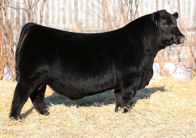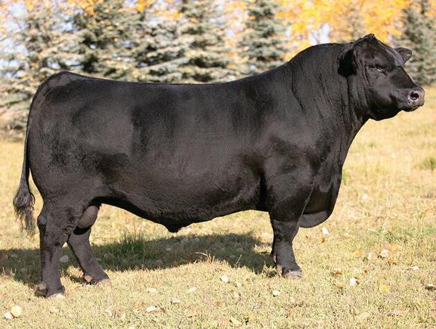The power bull from the strong Ellingson Angus herd. We utilized this bull to add extra pounds and growth to some of our more moderate females with great success.
