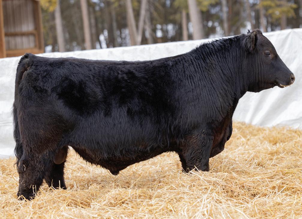 One of four paternal brothers out of an exciting new AI sire SAV Bloodline. 9K’s dam is an absolute tank of a cow. This bull is solid made, clean fronted and good footed.