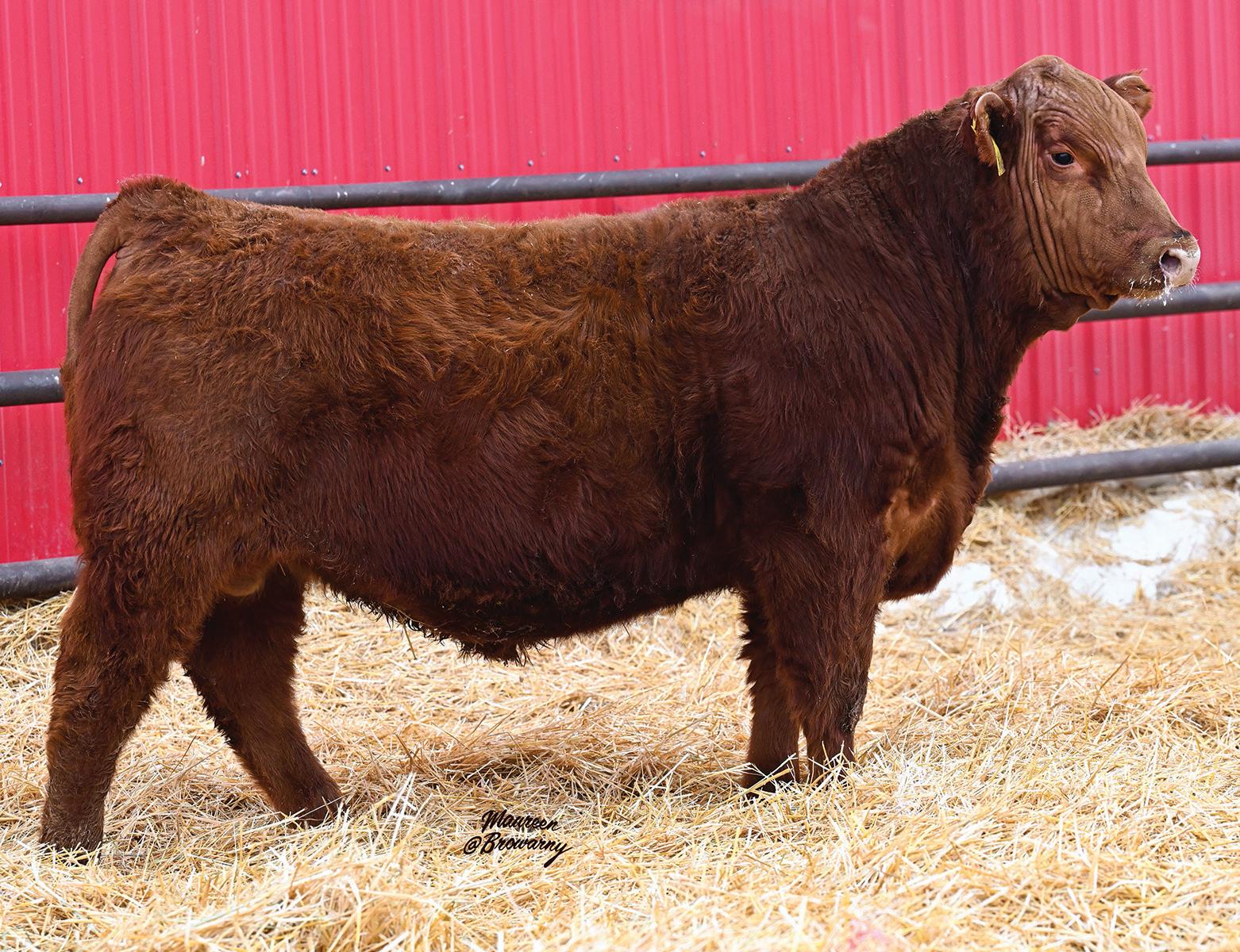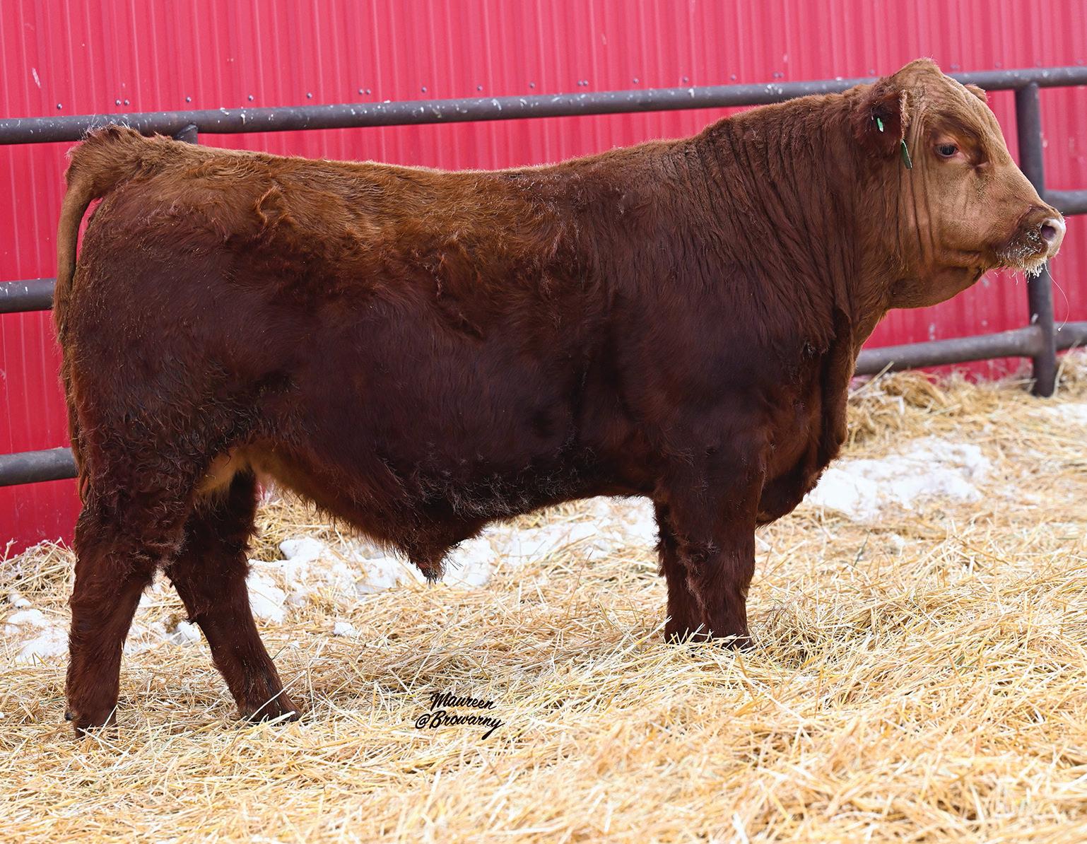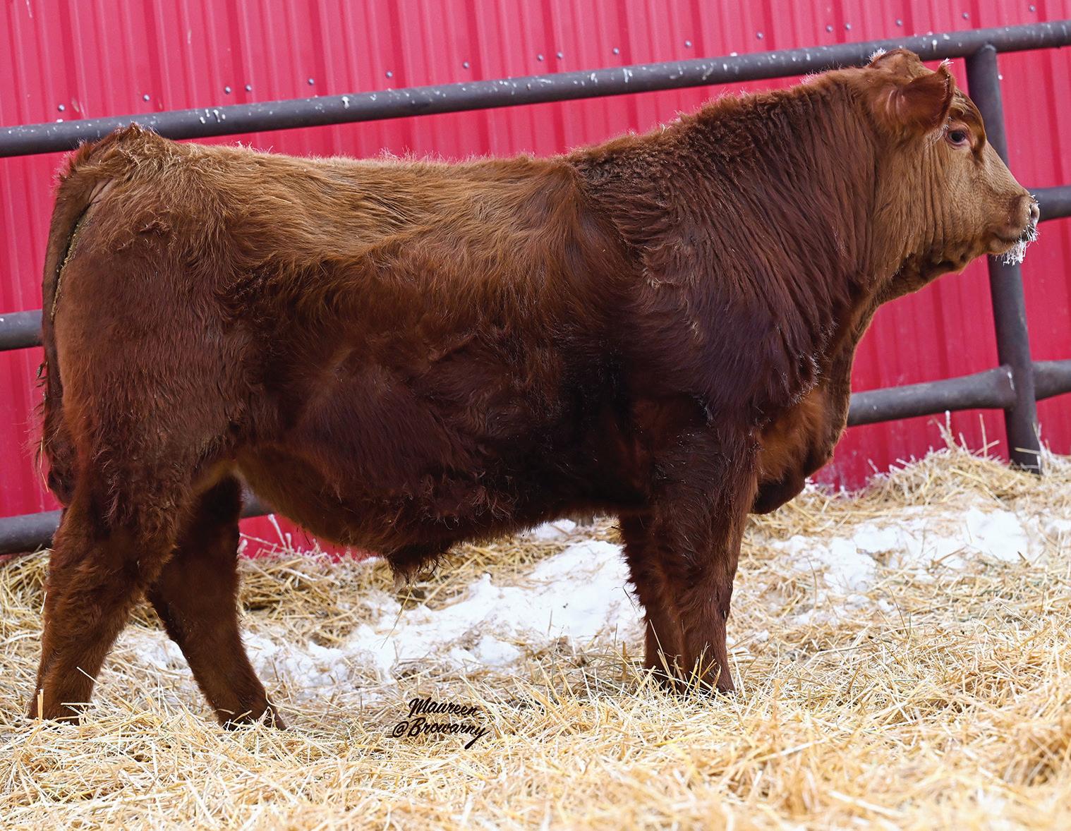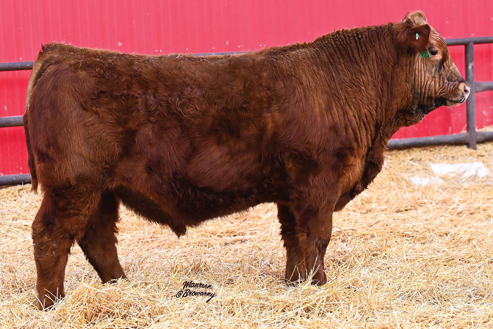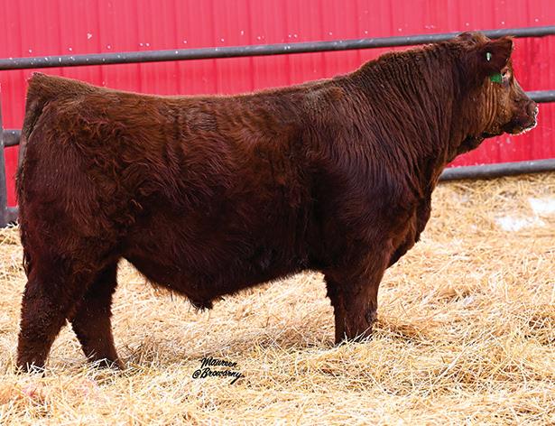 Korona will be an eye catcher sale day. He is one of the most complete bulls in the ofering. His sire 99H has added mus-