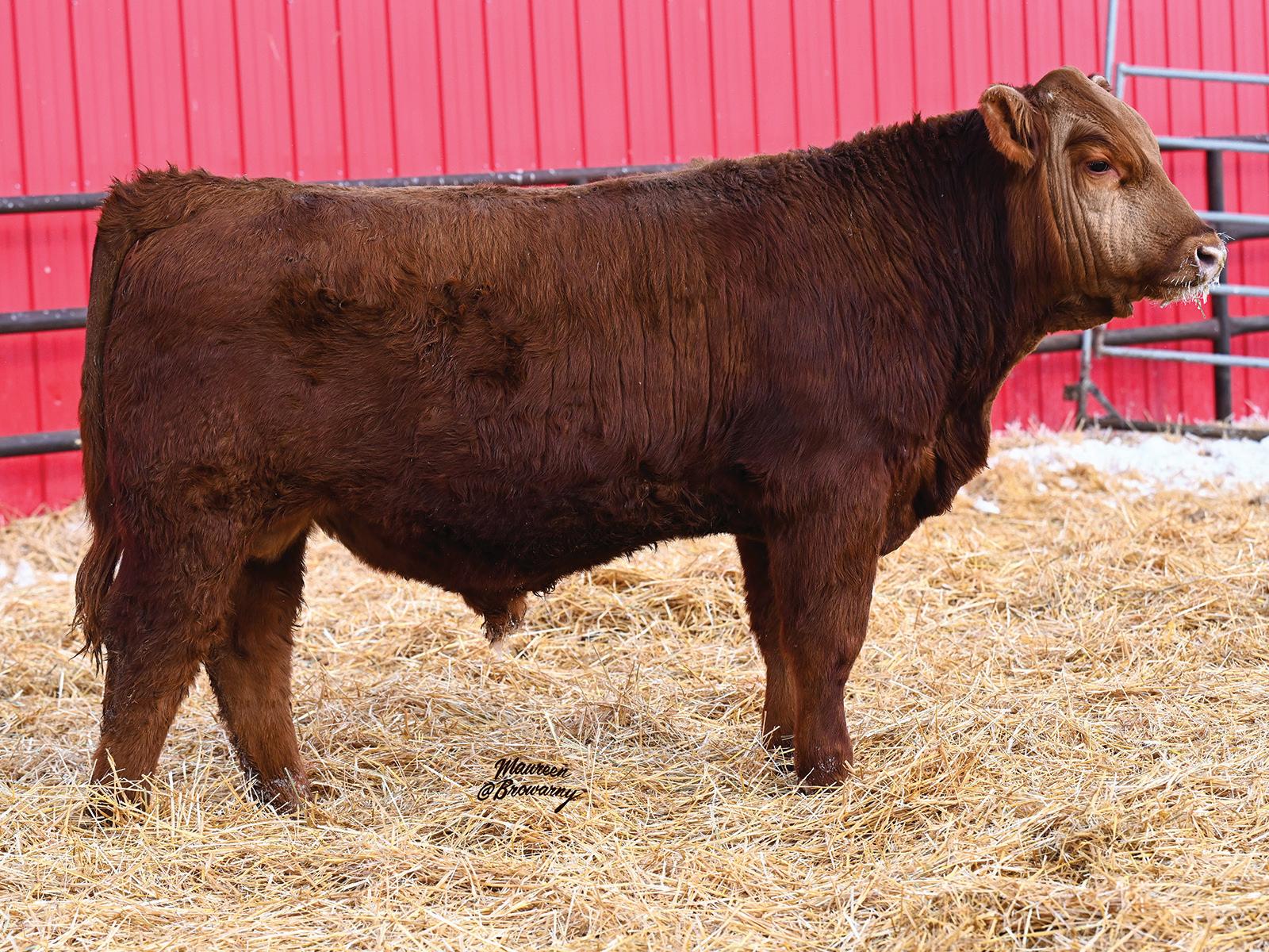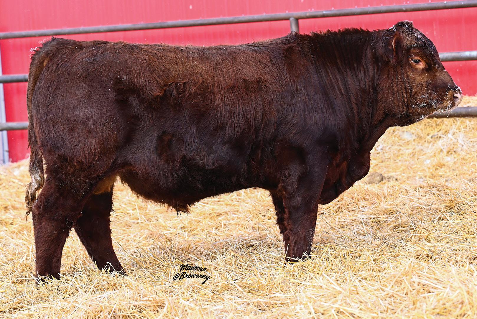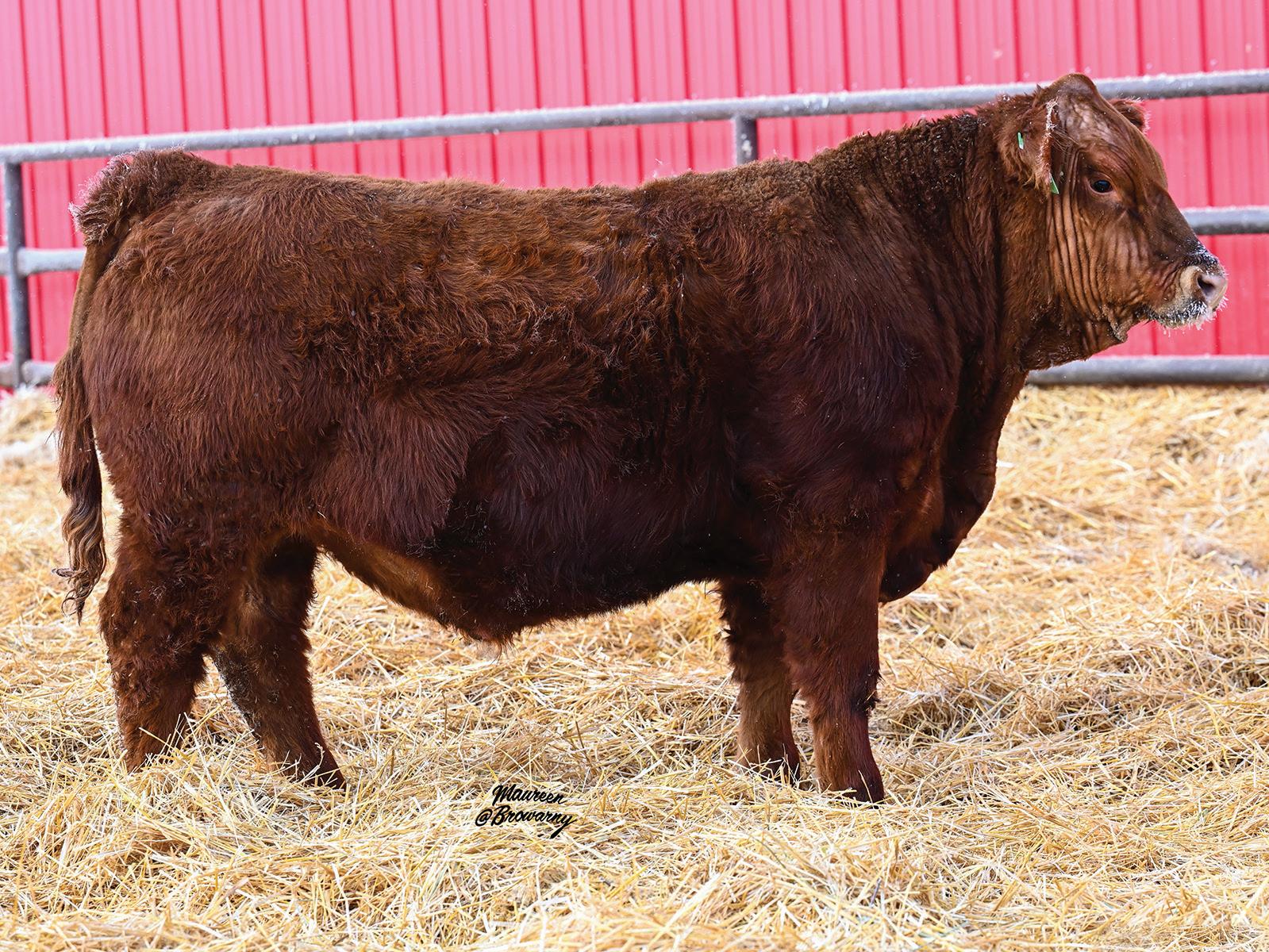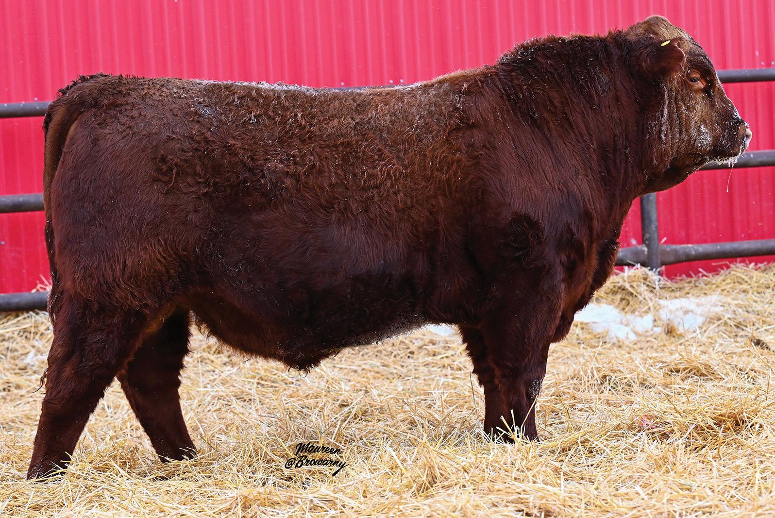 Korona will be an eye catcher sale day. He is one of the most complete bulls in the ofering. His sire 99H has added mus-