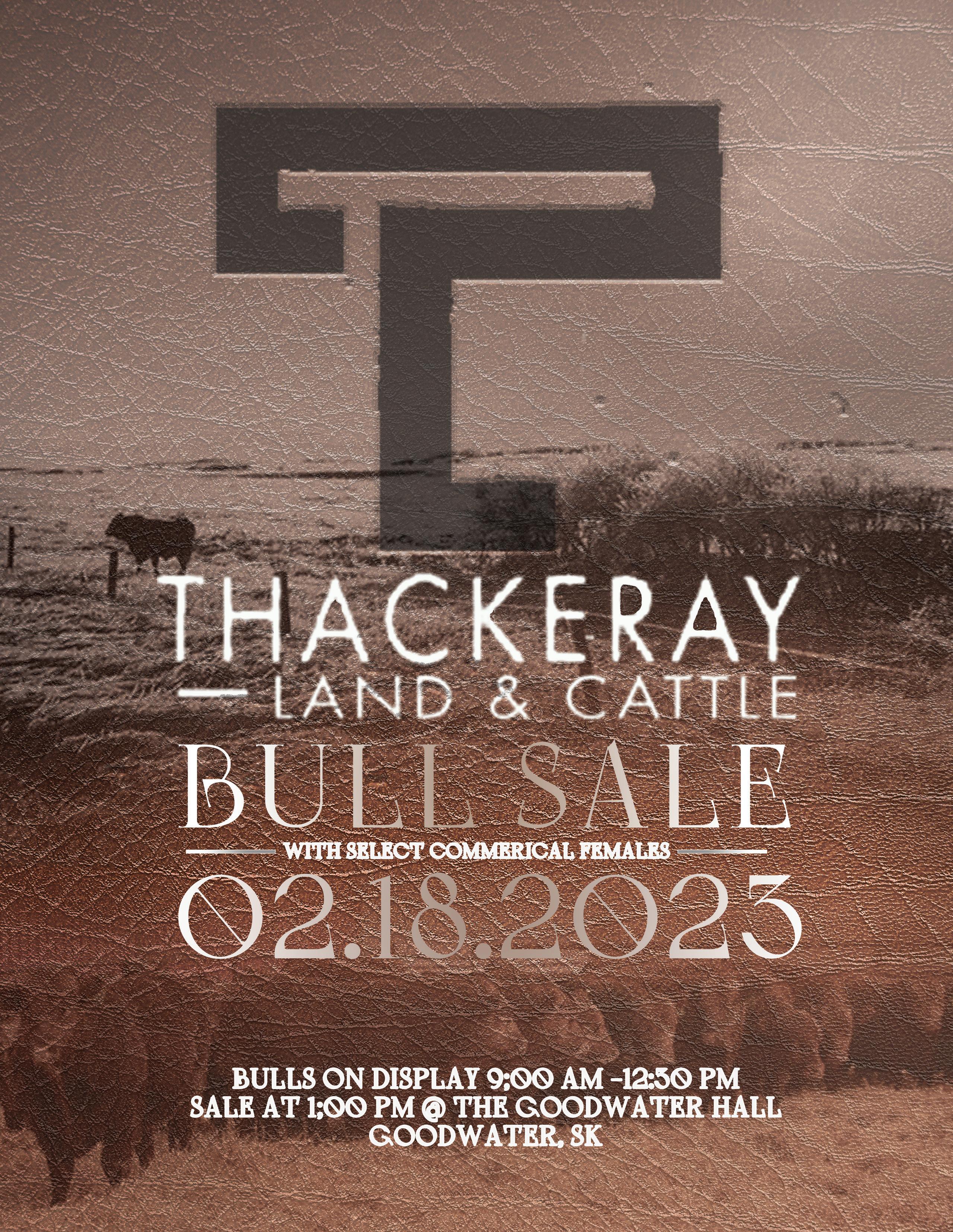 Welcome to the 2023 edition of the Thackeray Land and Cattle bull and open female sale. Hard to believe that another year has passed, but here we are preparing to present this year’s bulls for your appraisal. We feel that we have a good ofering once again with several sire groups represented. Bulls that will add size and scale to your mature cows or bulls that will settle your heifers and add comfort that there will be minimum trouble at calving.