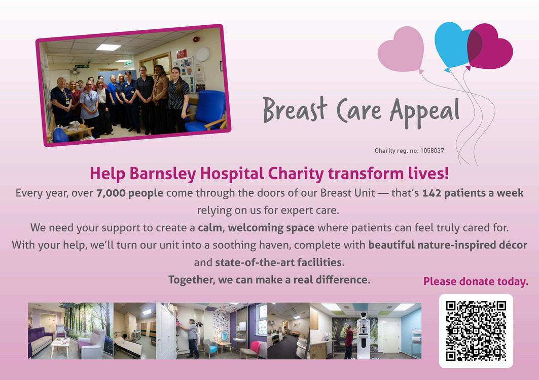 Barnsley Hospital Charity supports our NHS patients, staff and volunteers here at Barnsley Hospital. Your support helps us go the extra mile in making a difference. Together, we transform the hospital experience, providing comfort and state of the art equipment for patients and their families. Your support fuels ground-breaking research, enhancing medical care and saving lives.