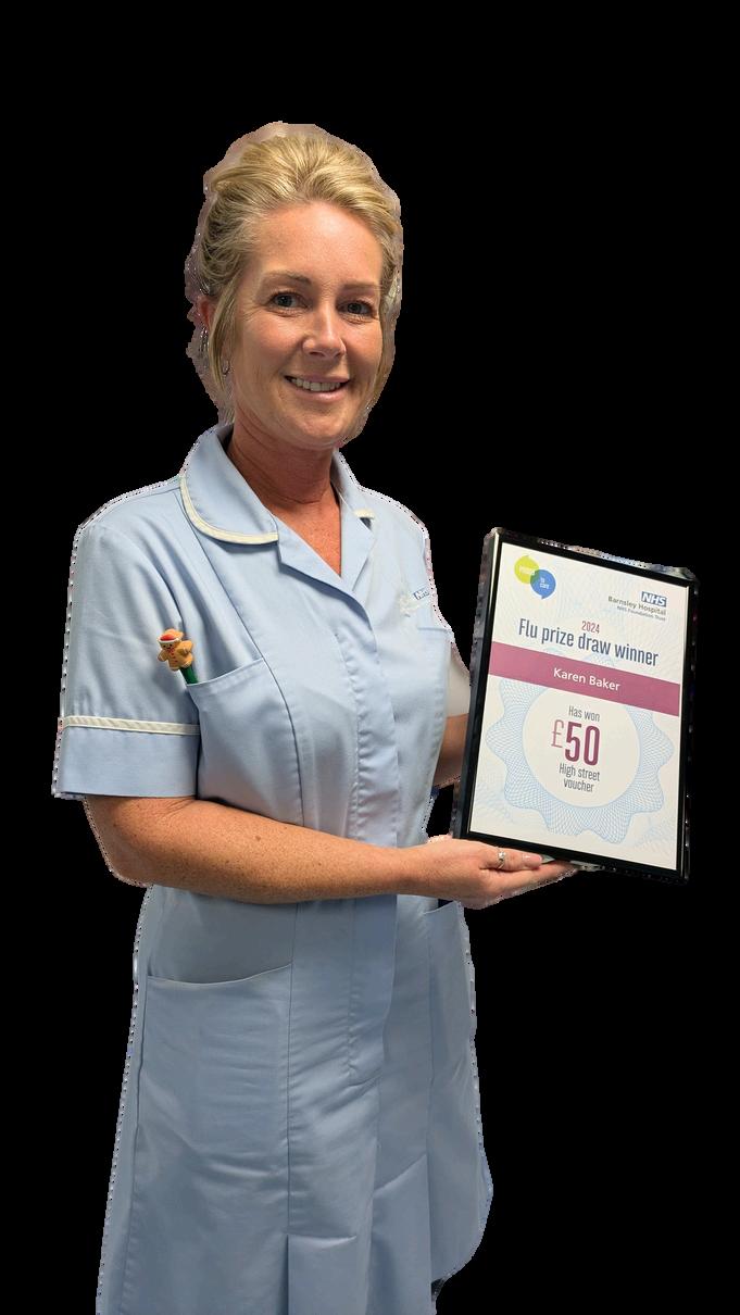 Lucky winner Karen Baker from Ward 35 won the most recent £50 prize draw for having taken up the offer of winter vaccinations.