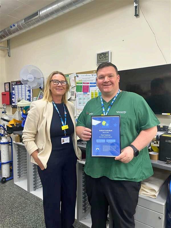 Paul Cadmen has significantly improved the Medical Engineering department. His dedication in preparing the basement and reorganising spare parts storage has made the workspace safer and more efficient. The entire team appreciates his efforts, which support the trust's goals and enhance the working environment.