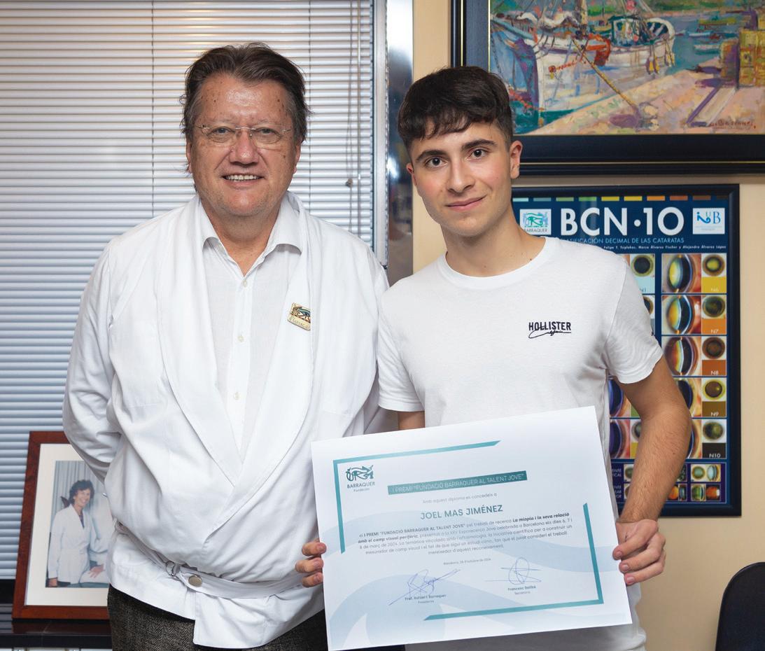 La Fundació Barraquer té entre els seus objectius el de fomentar la recerca en el camp de l’oftalmologia; per això, ha creat un premi especial al talent jove, al qual optaven els estudiants de secundària i batxillerat que van presentar treballs de temàtica biomèdica en la fira Exporecerca Jove 2024. El patronat de l’entitat, després de valorar els tres projectes finalistes presentats per l’organització del certamen, va atorgar el «1r Premi Talent Jove» a Joel Mas Jiménez pel seu treball «La miopia i la seva relació amb el camp visual perifèric».
