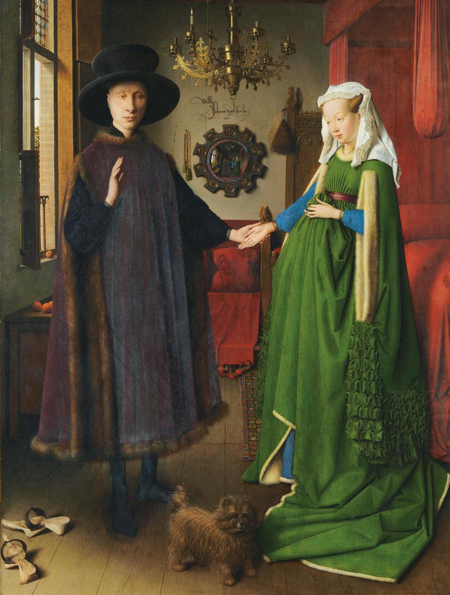 El matrimoni Arnolfini (J. V. Eyck, 1474), i detall del mirall al fons.