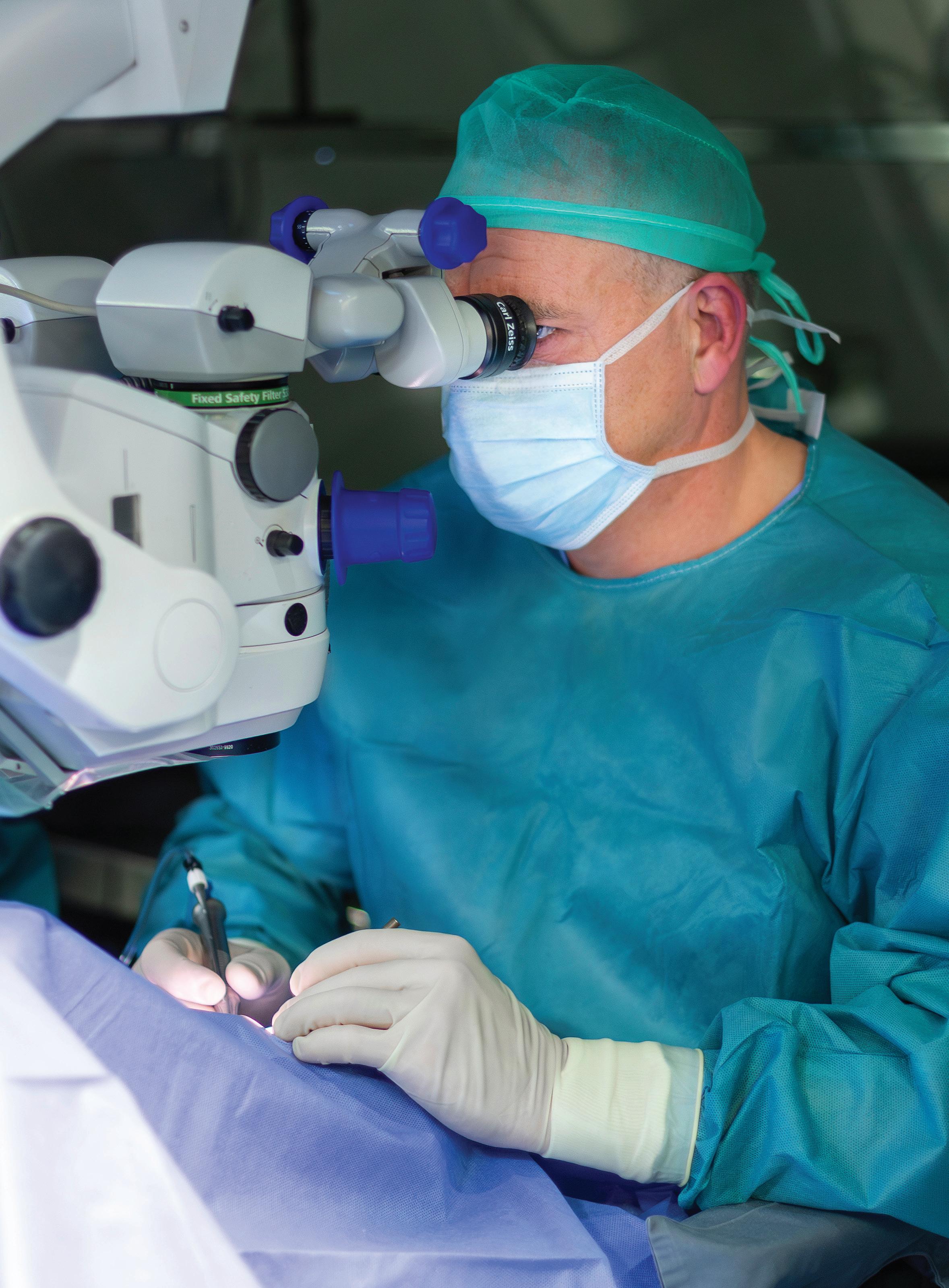 El Dr. Jesús Téllez al quiròfan, efectuant cirurgia de glaucoma.