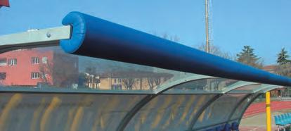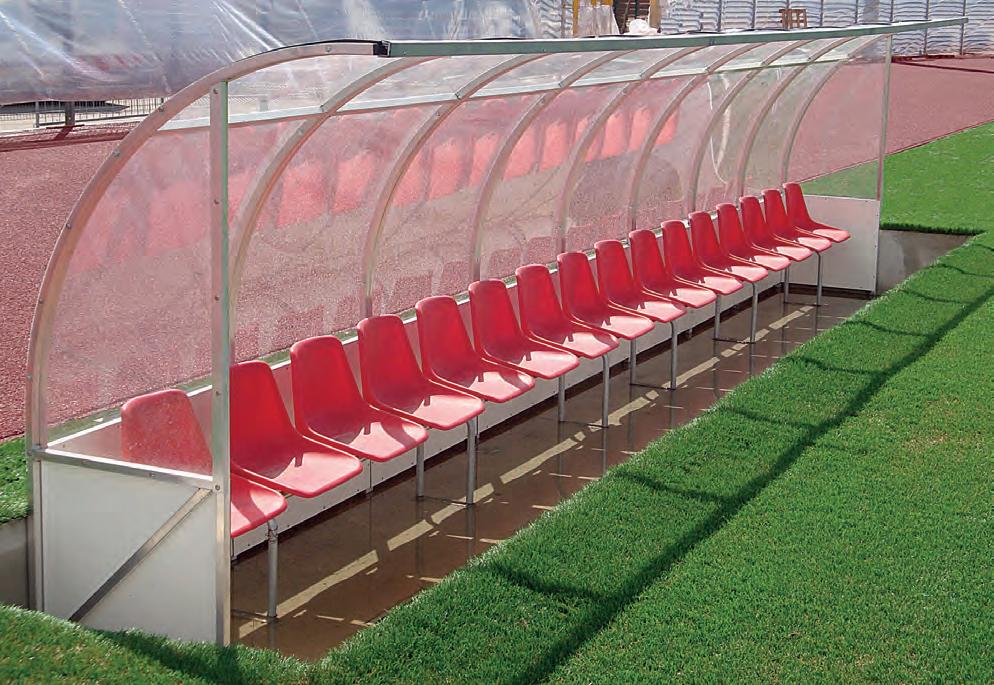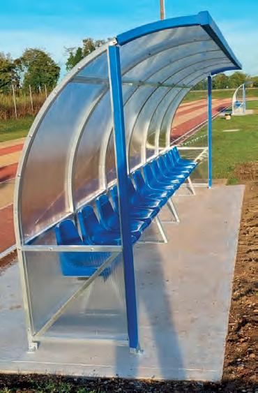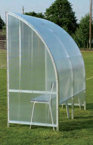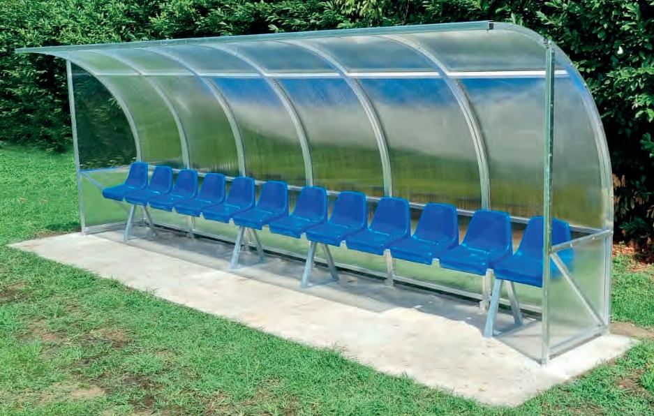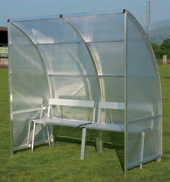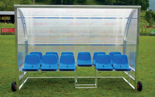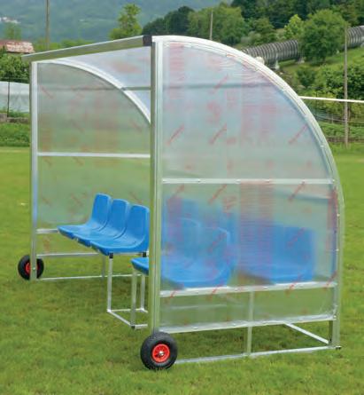 Panchina allenatori trasportabile su ruote lunghezza metri 3 profilo curvato mm.50x30 in lega di alluminio - altezza utile cm.210 copertura in policarbonato alveolare mm.4 oppure in policarbonato trasparente mm.3